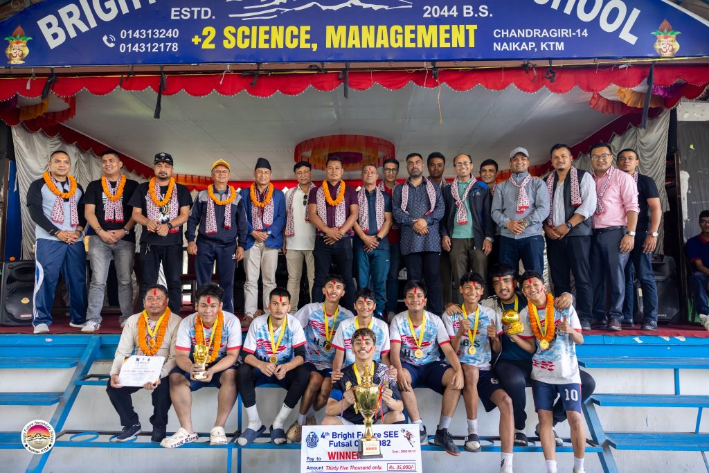 चन्द्रागिरिको ब्राइट फ्युचर स्कुलद्वारा आयोजित चौथो ब्राइट फ्युचर एसईई फुटसल कप २०८२ मा हिमशिखर स्कुल प्रथम हुन सफल भएको छ भने जेसिज इन्टरनेशनल स्कुलले दोश्रो स्थान हासिल गरेको छ । हिम शिखर स्कुलले जेसिस इन्टरनेशनल स्कुललाई ४-३ को अन्तरले हराएको थियो । उक्त प्रतियोगितामा हिम शिखर स्कुलका विपिन गुरुङ र सन्देश श्रेष्ठ क्रमशः प्रतियोगिताको उत्कृष्ट […]