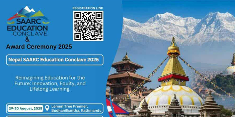 काठमाडौं । “भविष्यका लागि शिक्षाको पुनःपरिकल्पना : नवीनता, समानता र आजीवन सिकाइ” भन्ने मूल नारासहित शिक्षालयले सार्क शिक्षा सम्मेलन तथा पुरस्कार समारोह २०२५ आयोजना गर्ने भएको छ। दुई दिने यो कार्यक्रम २०८२ साल भदौ १३ र १४ गते (२९–३० अगस्ट २०२५) काठमाडौंको लेमन ट्री प्रिमियर, बूढानीलकण्ठमा आयोजना हुनेछ । कार्यक्रममा शोधपत्र प्रस्तुतिकरण, प्यानल छलफल र […]