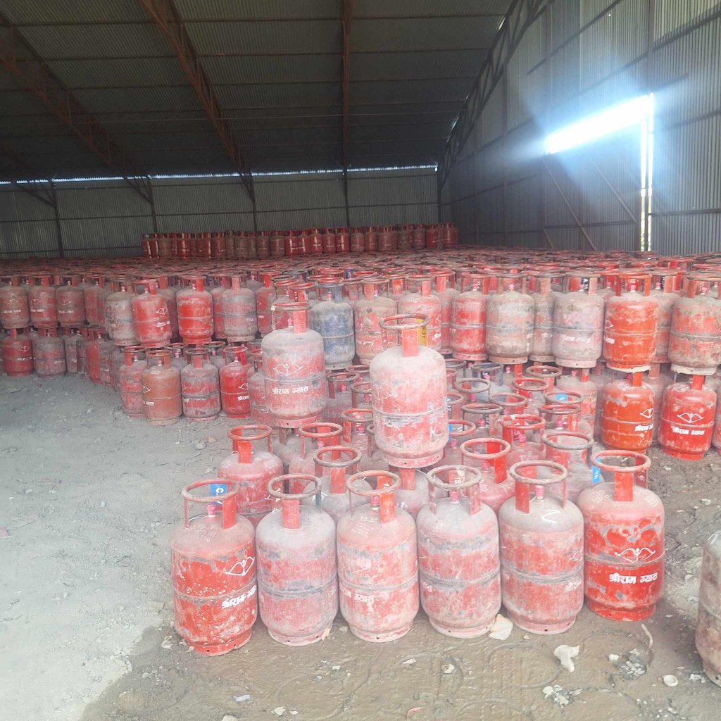 ललितपुरको हरिसिद्धिस्थित गोदाममा छापा मार्दा ६ हजार ६ सय ७७ वटा भरिएका ग्यास सिलिन्डर फेला