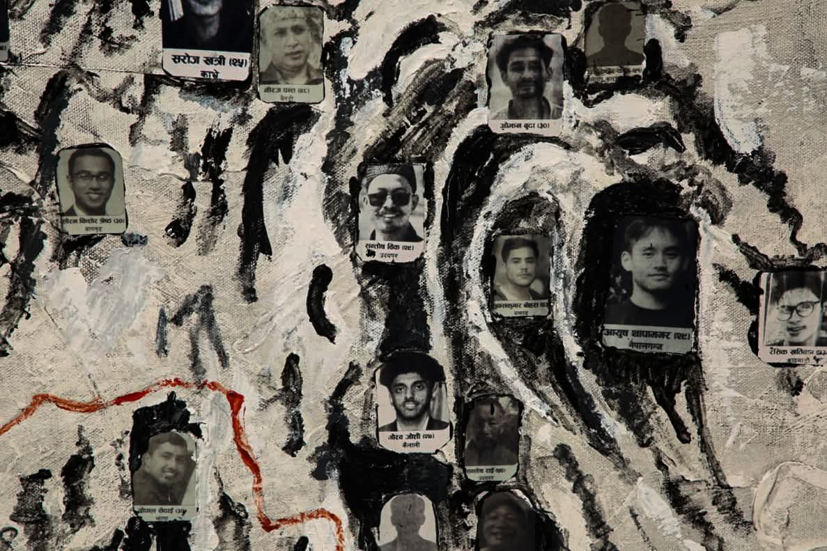 काठमाडाैं । जेन-जी आन्दोलनका क्रममा ज्यान गुमाएका व्यक्तिहरूको तस्बिर समेटेर कलाकार रविन्द्र श्रेष्ठले तयार पारेको पेन्टिङहरूको संसद भवन अगाडि विशेष प्रदर्शन गरिएको छ ।