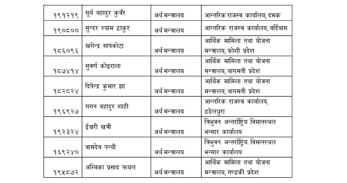 काठमाडाैं । अर्थ मन्त्रालयले ३० उपसचिवको सरुवा गरेको छ । अर्थमा कार्यरत उपसचिवहरूको भन्सार विभाग, आन्तरिक राजस्व विभागसहित मातहतका निकायहरूमा सरुवा भएको मन्त्रालयले जनाएको छ ।
