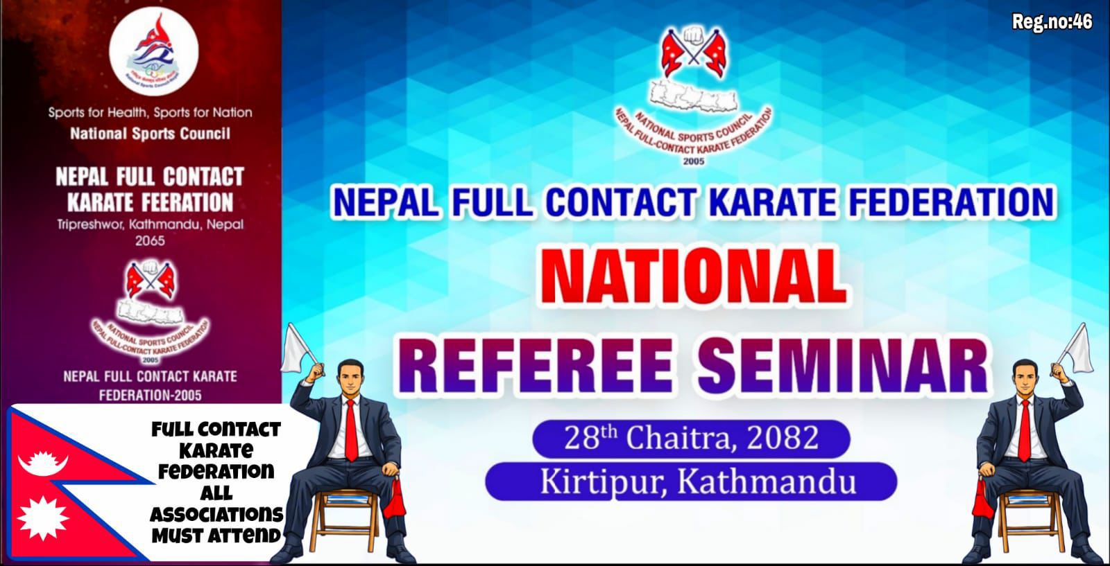 काठमाडाैं । नेपाल फुल कन्ट्याक्ट कराँते महासङ्घद्वारा चैत २८ गते कीर्तिपुरमा राष्ट्रिय रेफ्री सेमिनारकाे आयोजना गर्ने भएको छ ।