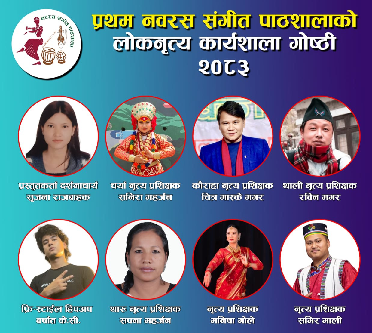 वैशाख ९ गतेदेखि १२ गतेसम्म हुन लागेको कार्यशाला गोष्ठीमा चर्या नृत्य अन्तर्गत प्रशिक्षक सनरा महर्जन, मगर समुदायमा प्रचलित कौराहा नृत्य अन्तर्गत प्रशिक्षक चित्र मास्के मगर तथा मगर समुदायमा प्रचलित थाली नृत्य अन्तर्गत प्रशिक्षक रविन मगरले कार्यशालामा सहभागिता जनाउँदै छन् ।